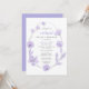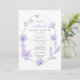 Quand tout le monde ne peut pas être ensemble, célébrez la future mariée moderne avec une douche de nuptiale virtuelle en ligne. Cette belle invitation à la douche nuptiale présente un cadre délicat formé par une vigne accentuée par des aquarelles florales lavande, un script contemporain élégant de lavande et une typographie qui s'harmonisent à la douce ambiance des fleurs. Vous pouvez facilement personnaliser avec les détails de la douche en ligne, y compris les liens d'accès en ligne (zoom, skype, facetime, etc.), les informations de registre, où envoyer la carte ou les cadeaux ou l'option d'ouvrir en ligne et envoyer plus tard, et un contact pour plus d'informations.