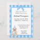 L'invitation anniversaire de enfant parfaite pour une fête de 1er anniversaire. Invitation a un ours avec un casquette de fête d'anniversaire bleu soufflant une corne de fête. Customisez votre invitation à la fête en utilisant notre modèle facile.