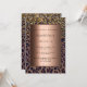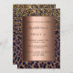 Elégante, cool, glamour et féminine invitation à une Soirée Sweet 16, 16ème anniversaire avec motif léopard brun, doré et noir, décorée de confettis dorés. Un cadre en bronze métallique avec espace pour vos informations de fête. Retour : motif léopard avec confetti.