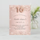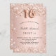 Pour une soirée Sweet 16, 16ème anniversaire. Un arrière - plan rose à gradient or. Décoré de confettis d'or rose. Personnalisez et ajoutez un nom et des détails du parti. Le nom est écrit avec un script de style écrit à la main. Le numéro 16 est écrit avec une police de style ballon.