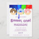 Invitation Doux beignets, couleurs arc-en-ciel, premier anniv