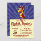 Dragon chinois rouge et jaune mignon sur des rayons bleus avec feux d'artifice blancs pour une fête d'anniversaire amusante.