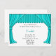 Une magnifique invitation à toute pièce de théâtre ou de théâtre. Des rideaux de théâtre turquoises sont ouverts. Toutes les informations du centre sont personnalisables pour vos besoins.