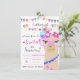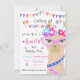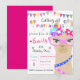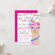 Cartons d'invitation à la fête d'anniversaire de lama de mode, Lama de mode avec lunettes roses et lunettes colorées et guirlandes et ballons colorés