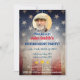 Vous cherchez des invitations à la retraite pour une personne de l'armée de l'air navale? Découvrez cette option classe avec le qui vous pouvez customiser avec les détails de votre propre fête. avec le drapeau américain dans l'arrière - plan, Le thème de couleur est rouge, blanc et bleu, Catégorie : cartes militaires de retraite enrôlées et invitations de fête avec étoiles et rayures / thème USA.