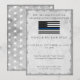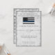 Invitez vos invités à la fête de fin d'études avec style avec cette invitation drapeau de police Thin Blue Line. Ce design présente un fond gris argenté avec un drapeau de police Thin Blue Line et les détails de votre fête en typographie grise séparés par des étoiles blanches. Le dos de la carte comporte un motif d'étoiles blanches sur faux argent. Conçu par l'artiste de renommée mondiale ©Tim Coffey.