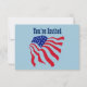 Invitation à une fête du jour de l'Indépendance du 4 juillet. Un drapeau américain flottant à l'arrière-plan.
