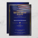 Drapeau américain glorieux flottant sur un fond bleu foncé. Un modèle de fête de retraite élégant facile à éditer. Ce design élégant convient aux vétérans, aux militaires, à la police, aux emplois liés au gouvernement ou aux emplois liés au patriotisme.