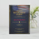 Drapeau américain glorieux flottant sur un fond bleu foncé. Un modèle de fête de retraite élégant facile à éditer. Ce design élégant convient aux vétérans, aux militaires, à la police, aux emplois liés au gouvernement ou aux emplois liés au patriotisme.