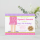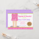 Dressing Gown Pajamas and Pancakes Party Invitation pour cette occasion spéciale. L'arrière - plan a des rayures violettes et des pois roses. Les mots peuvent être changés selon vos besoins. Illustrations de JW