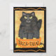 Un chat drôle de sorcières dans l'invitation de Halloween de sucrerie. Jamie Wogan Edwards