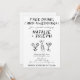 Ce faire-part de mariage est parfait pour votre mariage si vous recherchez une invitation unique et facile à éditer amusante.Une invitation modèle simple et minimaliste en noir et blanc élégant. Ce qui présente un arrière - plan blanc clair sur le devant et gribouillent bouteille de champagne et des lunettes avec drôle de dire "boissons gratuites et un mariage" pour faire rire vos invitations et briser la glace. Et les prénoms de mariée et de mariée fantaisiste écrits à la main noire. Et les initiales du marié dans le dos. Abordable et il est aussi numérique électronique e-invitation si vous voulez l'envoyer par texte ou e-mail. Toutes les informations sont personnalisables en cliquant sur le bouton personnaliser. Alors attrapez-le et faites-le vous pour que vous fassiez de vous des invitations engagés et enthousiasmés.