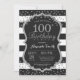 100e anniversaire Invitation pour les femmes ou les hommes. Invitation de la fête d'anniversaire noir et argent. Parties scintillant en argent Confetti. Blancs et Noirs. Numérique imprimable. Pour plus de personnalisation, cliquez sur le bouton "Customiser" et utilisez notre outil de conception pour modifier ce modèle.