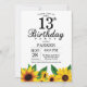 Invitation du 13e anniversaire du tournesol. Fleurs florales et Arrière - plan blanc. Country Vintage Retro. Enfants Fille anniversaire. 12ème 13ème 15ème 16ème 18ème 20ème 21ème 30ème 40ème 50ème 60ème 70ème 80ème 90ème 100ème, tout âge. Numérique imprimable. Pour plus de personnalisation, cliquez sur le bouton "Customiser" et utilisez notre outil de conception pour modifier ce modèle.
