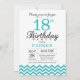 Invitation du 18e anniversaire avec Turquoise Chevron. Noir et Blanc. Anniversaire adulte. Homme ou Femmes Anniversaire Invitation. Pour plus de personnalisation, cliquez sur le bouton "Customiser" et utilisez notre outil de conception pour modifier ce modèle.