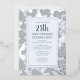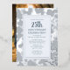Célébrez 25 ans d'amour, de rire et d'héritage avec une invitation aussi intemporelle que le voyage lui-même. Cette élégante conception à feuillu honore votre anniversaire d'argent avec des accents chatoyants disponibles en argent, or ou or rose, chacun ajoutant une touche éclatante à votre célébration. Option pour photo et informations supplémentaires sur le dos. Que vous soyez l'hôte d'un dîner intime ou d'une grande soirée, cette invitation modèle donne le ton avec une mise en page gracieuse, et des détails personnalisables qui reflètent votre histoire d'amour unique ou celle de vos proches.
