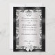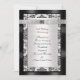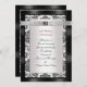 25e anniversaire de la fête invitation élégante frontière en damas noir et blanc avec rubans satinés et coeurs en argent