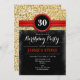 30th Birthday Invitation Design élégant avec noir, faux or parties scintillant et une pointe de rouge. Parfait pour une fête du trentième anniversaire féminin. Peut aussi être customisé pour n'importe quelle année!