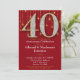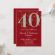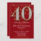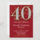 Une élégante invitation à la fête du 40e anniversaire en rouge et or, avec un grand 40 avec des diamants et l'apparence d'or ainsi qu'un rideau de citron de lumières d'or.
