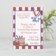 Invitation patriotique à la frontière rouge, blanche et bleue, drapeau américain, nourriture et feux d'artifice.