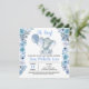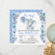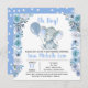 baby shower d'aquarelle pour garçons Cette invitation de baby shower d'éléphant d'aquarelle pour garçons présente un joli éléphant avec quelques fleurs d'aquarelle bleue sur un arrière - plan blanc. Idéal pour un baby shower à thème d'éléphant de garçon à venir.