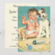 Facile à customiser le genre révèle l'invitation de baby shower partie. Ajoutez simplement vos infos ! Modifiez le texte pour créer une invitation unique et personnalisée pour toute occasion unique ! Si vous voulez changer la couleur de l'arrière - plan ou le style de police, cliquez simplement sur le bouton "personnaliser" pour accéder à tous les outils de conception. Illustration vintage design pour enfants et bébés avec un bébé parlant au téléphone avec un chien de terrier à l'écoute de la conversation. Une bouteille de lait est sur le tapis fleuri. Une mignonne invitation à célébrer votre nouvelle arrivée !