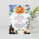 Élever votre baby shower avec cette invitation d'Halloween moderne. Le jeu de couleurs noir et orange en gras donne de l'humeur, et le texte ajoute une touche légère. Ce design unique fera de vos invités un passionné de RSVP et de la fête.