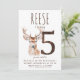 Célébrez le cinquième anniversaire de votre petit avec notre charmant Deer Theme Invitation! Dotée d'un adorable cerf et d'accents boisés luxuriants, cette invitation est parfaite pour une fête magique sur le thème de la forêt. Personnalisez avec le nom de votre enfant et les détails de la fête. Commandez dès maintenant pour rendre inoubliable la journée spéciale de votre enfant !