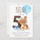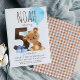 Cet invitation de fête de cinquième anniversaire a un ours en peluche avec un casquette de fête bleu. Le dos de l'invitation a un motif en vichy marron; parfait pour le thème animal de forêt boisée de garçon 5e anniversaire fête. Personnalisez l'invitation avec vos détails et vous avez les options pour acheter des invitations imprimées ou un téléchargement numérique.