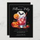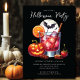 Cette invitation festive comprend un cocktail jack-o'-lantern Halloween. Les mots "Halloween Party" sont écrits dans une police de caractères amusante. C'est la meilleure façon d'invitation vos amis à une fête d'Halloween éffrayante et sucrée où ils peuvent venir dégustés et déguster un délicieux cocktail d'Halloween.