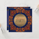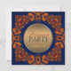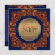 Moderne royal - style art fusion - invitation à dîner élégant avec des couleurs bleu foncé élégantes et parées de dentelle en batik complexe comme l'art orangé brûlé riche - entièrement personnalisable |
