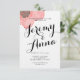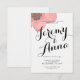 Cette invitation faire-part de mariage simple et classique présente le nom de la mariée et du marié en caractères gras et une pivoine rose