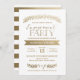 Cette invitation élégante et chic à la fête de fiançailles présente des feuilles d'or brillantes, des lauriers tirés à la main, de la typographie moderne et des motifs en faux feuille d'or. Sélectionnez une forme de coupe ou un papier texturé pour une invitation spéciale supplémentaire.