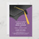 Invitation de Graduation moderne violet avec un casquette noir gris & goût or.