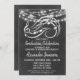 Une amusante invitation à la soirée de graduation en noir et blanc avec des lumières brillantes au sommet.