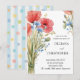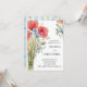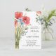 "Invitation romantique à la fête de fiançailles décorée de pavots rouges à l'aquarelle et de fleurs bleues délicates. L'élégant design floral combiné à la typographie moderne crée une invitation intemporelle et élégante, parfaite pour célébrer l'amour et l'engagement."