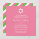 Invitation de jour de baptême rose preppy avec une étoile brillante audacieuse de David qui crée un merveilleux point focal sur cette invitation moderne. Sur le dos, on retrouve des rayures roses, vertes et blanches. Customisez cette invitation en ligne pour répondre à vos besoins et le voir tout de suite. Parfait pour toute cérémonie hébraïque incluant les Bat mitzvah, les jours de noms, B'rit Bat, ou Simchat Bat. Si vous aimez ce design invitation juif et souhaitez acheter des cartes de coordination, veuillez visiter mon magasin à www.zazzle.com/vginvites Victoria est un concepteur d'invitation professionnel à Jupiter, FL près de West Palm Beach.