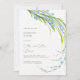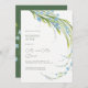 Invitation du lendemain avec un élégant bouquet de délicates fleurs de ne m'oubliez pas bleues avec des feuilles vert clair et des tiges courbes, couleurs pastel naturelles de printemps ou d'été, un léger bouquet romantique de fleurs sauvages. Aquarelle numérique botanique. Fleur de botanique Invitation du lendemain. Collection Ne m'oubliez pas.