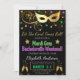 Magnifique et amusant, ce MARDI GRAS / FAT TUESDAY / NEW ORLEANS / MASQUERADE invitation à la fête est idéal pour les week-ends de dame commémorative - excellent pour les fêtes de bachelorette! Le Invitation présente un faux masque de mascarade en feuille d'or et un faux confetti de parties scintillant sur un arrière - plan noir.