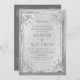 Une dalle de roche argentée grillée est la toile de fond de cette spectaculaire invitation métallique brillante d'argent avec cadre argenté brillant, bordure de crayon d'argent dessinée à la main avec typographie classique et formelle.