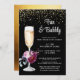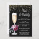 Un Nouvel An moderne Réveille une invitation de fête moderne avec du champagne en verre et de la parties scintillant d'or sur un arrière - plan noir. Fun & Bubbly thème. Aquarelle et parties scintillant dorée.