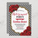 Conçu avec une rose rouge, cadre de parties scintillant dorée. Les rayures noir et blanc apportent une touche de chic moderne.