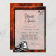 Invitation unique à la retraite pour un pompier ou un chef d'incendie. Design a un casque d'incendie avec le numéro personnalisable pour le moteur ou la station. L'Arrière - plan est des flammes et une hache rouge. Facile à customiser avec les détails de votre fête.