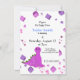 Un mignon dinosaure violet avec une douce expression sur son visage, prêt pour une fête d'anniversaire accentue cette invitation amusante. Une bordure de cubes et de motifs amusants ajoute un attrait amusant. Customisez avec toutes vos informations comme vous le souhaitez.