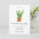 Une invitation à la fête de la maison mignonne et moderne avec l'illustration d'un plante de serpent. Le dos de la carte a un motif sur un arrière - plan orange.