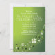 Commencez votre dîner annuel St. Patty's Day Dinner Party avec notre invitation moderne et élégante, avec un florissant avec de minuscules shamrocks de trèfle blancs et verts sur un arrière - plan vert et sombre. customisez facilement avec vos informations de fête de St. Patricks.