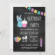 Chalboard tendance Invitation d'anniversaire pour enfants avec un lapin lapin mignon conçu pour être facilement et rapidement customisé aux détails de votre événement.