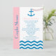 Si vous recherchez une invitation wedding shower en coed couple avec un thème nautique, c'est celle-ci. Le design est présenté en rose et bleu et a une ancre avec une chaîne cardiaque comme point focal. Le nom de la mariée et du marié apparaît au-dessus d'un petit poème. Vous pouvez customiser le design avec tous les détails de votre invitation qui apparaissent sous un chevron zigzag mer. Une bonne façon de commencer un wedding shower pour les couples à thème nautique. Copyright henishouseo