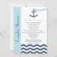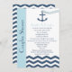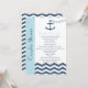 Un couple ou un wedding shower de codes est-il dans votre avenir? Si c'est le cas, vous apprécierez cette invitation wedding shower amusante aux couples nautiques dans les tons bleus. Le point central de ce design est une ancre bleue avec une chaîne de coeurs. Un poème mignon apparaît sous les noms du couple et les détails de votre invitation peuvent être customisés et apparaîtront juste au-dessus d'un chevron ou d'une mer de zigzag. Une invitation wedding shower nautique moderne et ludique pour les couples. Copyright henishouseo