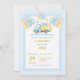 Celebrate your little one’s first birthday with this sweet dump truck invitation! Featuring a cute truck carrying gifts and balloons with soft baby blue gingham pattern and dotted borders, this design is perfect for a boys’ first birthday party. Fully customizable with name, date, time, and details for a simple and charming celebration.